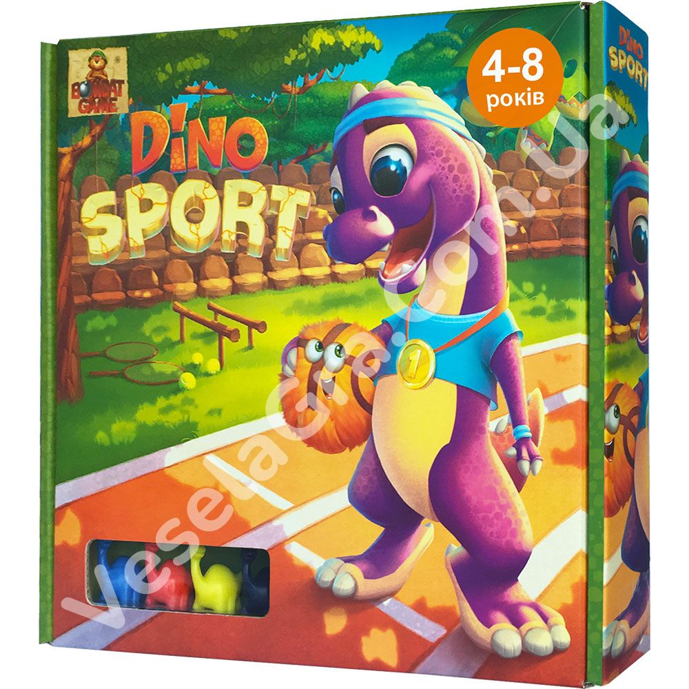 Діно спорт – весела настільна гра бродилка для всієї родини. Дія гри відбувається на спортивному Дино-острові. Ця гра є ідеальним варіантом для маленьких гравців та гравців-початківців. Грати в цю гру зможуть малюки від 4-х років.