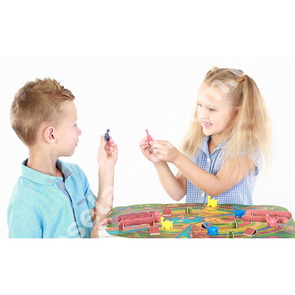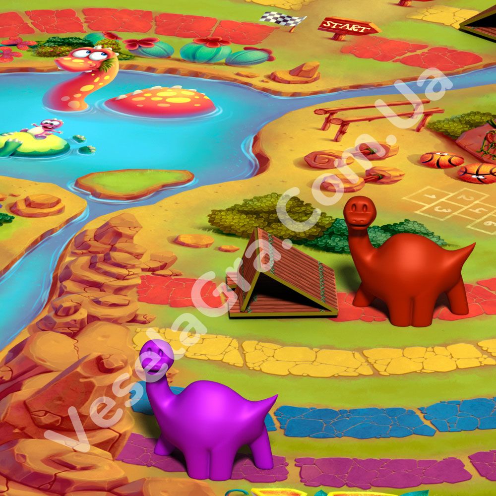 Метою гри, як у будь-якій гонці, є досягнення фінішу першим. Дійові персонажі – різнокольорові динозаври, який змагаються за перемогу в турнірі. Фішкою цієї гри – є спеціальні 3D перешкоди на шляху динозавриків, які Ви можете встановити на полі самостійно.
