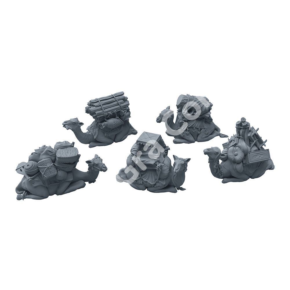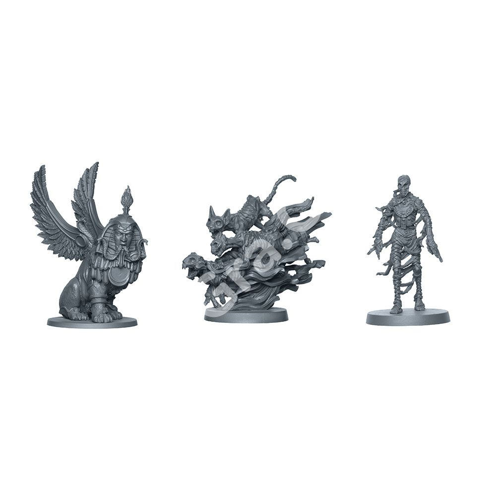 1 ігрове поле, 1 планшет поклоніння, 1 центральний планшет, 5 планшетів богів, 5 планшетів , луки богів, 35 карток баю, 6 карток стражів, 5 карток пам’яток, 197 жетонів, 5 пластикових жетонів Анкха, 1 пластиковий маркер подій, 4 пластикові підставки для фішок дій, 20 пластикових підставок, 1 книга правил, 1 книга сценаріїв, 80 пластикових мініатюр