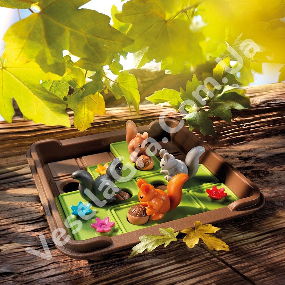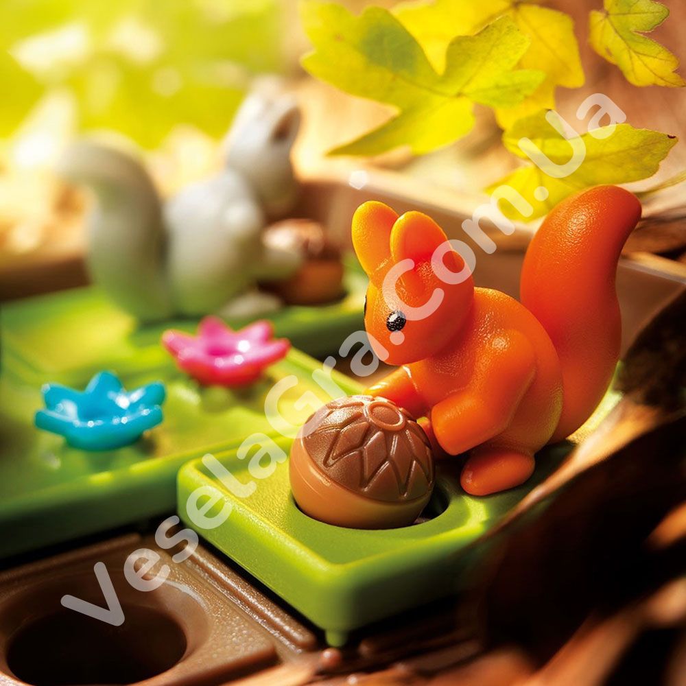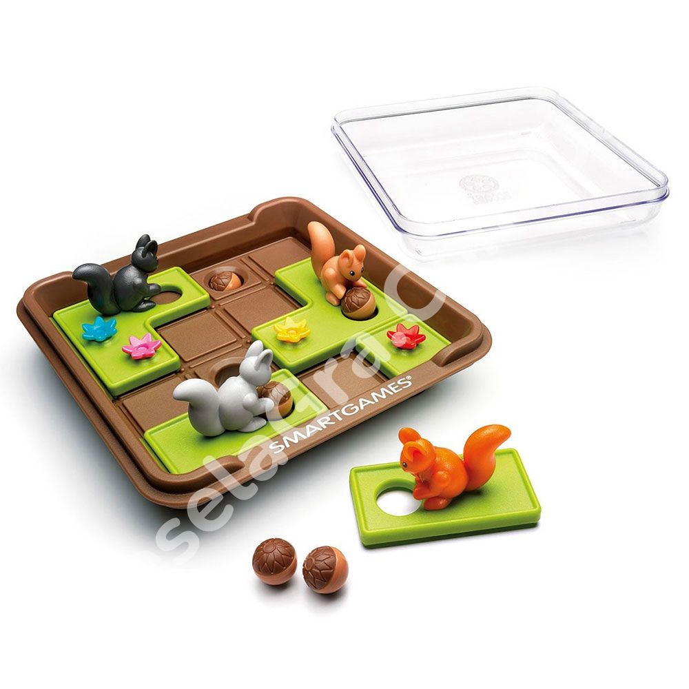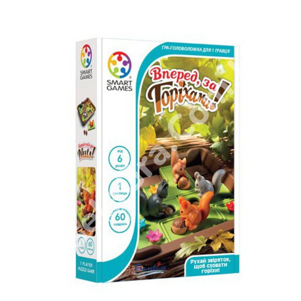 «Вперед за горіхами» — цікавезна розвиваюча гра від бренду SMART Games. Дуже милі головні герої-білочки збирають жолуді на зиму. Давайте допоможемо їм це зробити. Кожна білочка на початку гри отримує жолудь, який має заховати у землю. Для цього їм буде потрібно переміщуватися за принципом п’ятнашок.