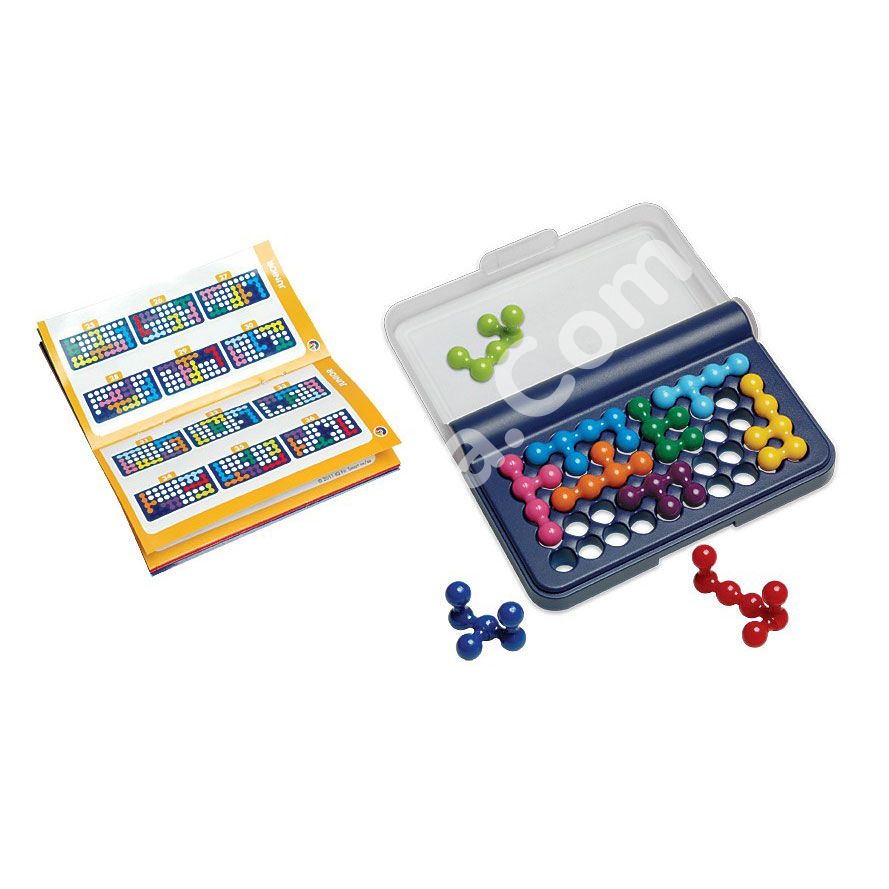 У комплект входять об’ємні різнокольорові деталі різної форми з пластику та зручний пластиковий корпус з кришкою, завдяки якому цю гру можна легко взяти з собою в дорогу. У буклет, що входить до складу гри є 120 завдань, п’яти рівнів складності. Спробуйте розв’язати усі з них.